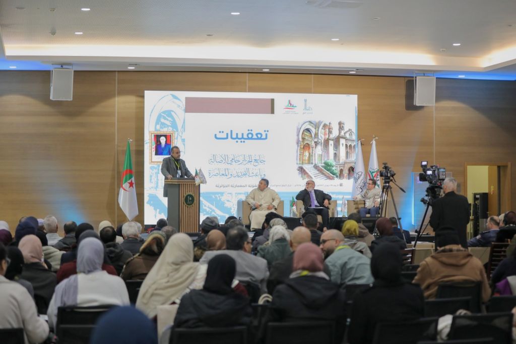 في اليوم الثّالث والأخير من احتفاليّة الذّكرى الثّانية لافتتاحِ #جامع_الجزائر، وبإشراف العميد، الشّيخ محمّد المأمون القاسميّ الحسنيّ، احتضن المركز الثّقافيّ، اليوم الأربعاء 16 شعبان 1447هـ، الموافق 04 فبراير 2026م، أشغال اليوم الدّراسيّ الموسوم بـ “الهويّة المعماريّة الجزائريّة: أصالة وتجديد”.