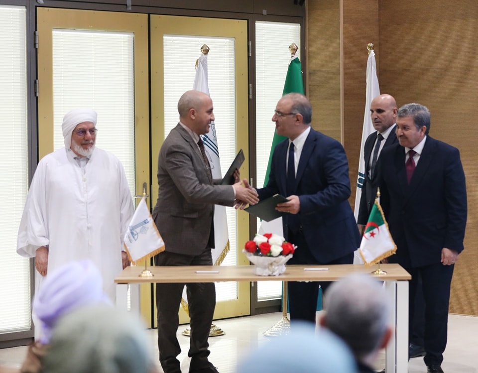 أشرف وزير الدّولة، عميد جامع الجزائر، الشّيخ محمّد المأمون القاسميّ الحسنيّ، ووزير الاتّصال، السيّد زهير بوعمامة، صبيحة اليوم الأربعاء، بالمركز الثقافيّ لجامع الجزائر، على مراسم توقيع اتفاقيّة إطار للتّعاون والشّراكة، بين جامع الجزائر والمؤسّسة العموميّة للتّلفزيون.