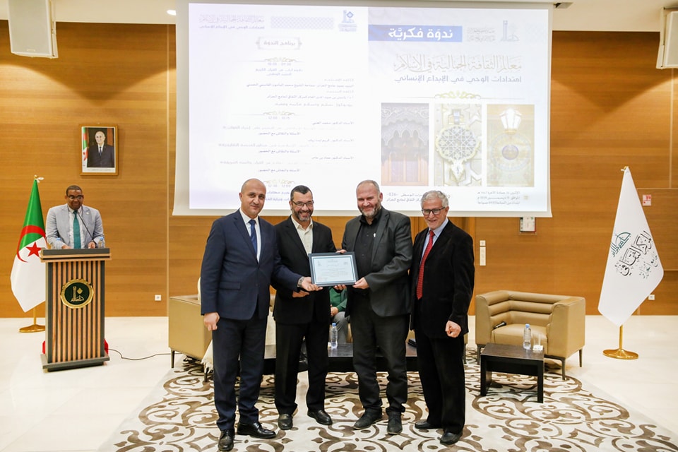 واختُتمت الفعاليّة بتكريم الأساتذة المحاضرين، وتوزيع شهادات المشاركة، وزيارةٍ لمعرض فنيّ أُقيم على هامش النّدوة، يجسّد التّلاقي بين الفنّ والرّوحانيّة، في رحاب جامع الجزائر.