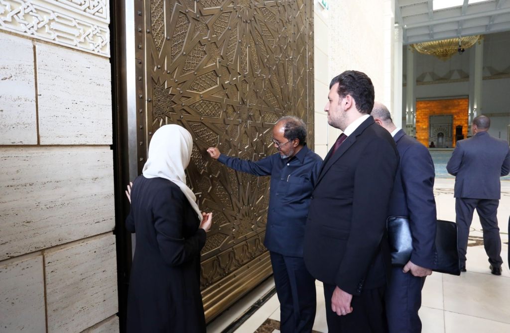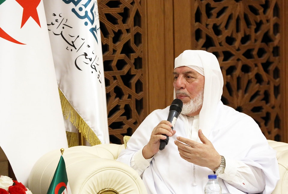 وقدّم الشّيخ القاسميّ للضيف الكريم عرضًا موجزًا عن رسالة جامع الجزائر؛ مذكّرًا بأنّه يضمّ مؤسّسات متعدّدة ومتكاملة، رسالتها جميعًا خدمة الإسلام بمنهجه القويم، الوسطيّ المتوازن، الذي يمثّل سماحة دعوته، وعدالة شريعته.