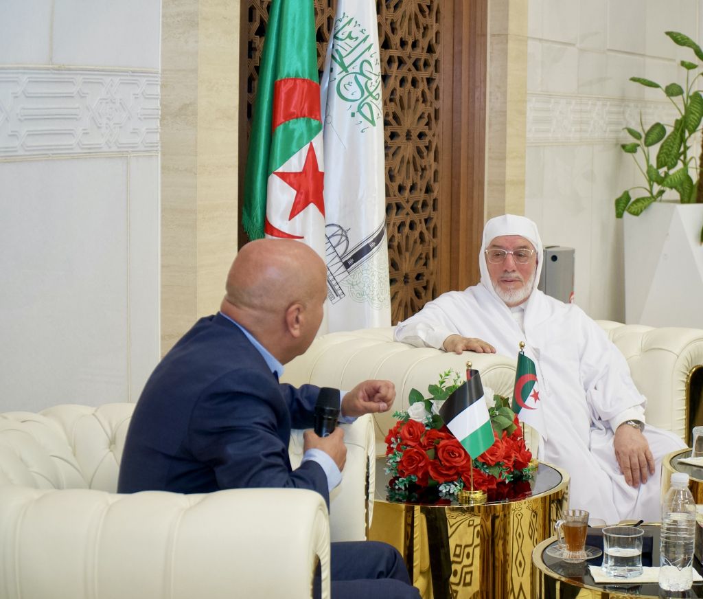 استقبل عميد جامع الجزائر، الشيخ محمّد المأمون القاسمي الحسني، أمس الاثنين 21 ذي القعدة 1446ه، الموافق 19 ماي 2025م ، الوزيرَ الفلسطيني أحمد أبو هولي، رئيس اللجنة العليا لإحياء ذكرى النكبة، عضو اللجنة التنفيذية لمنظمة التحرير الفلسطينية، في زيارة لجامع الجزائر، استقبل عميد جامع الجزائر، الشيخ محمّد المأمون القاسمي الحسني، أمس الاثنين 21 ذي القعدة 1446ه، الموافق 19 ماي 2025م ، الوزيرَ الفلسطيني أحمد أبو هولي، رئيس اللجنة العليا لإحياء ذكرى النكبة، عضو اللجنة التنفيذية لمنظمة التحرير الفلسطينية، في زيارة لجامع الجزائر، صحبة وفد مرافق، اطّلعوا خلالها على مرافق الجامع ورسالته الدينية والحضاريّة.