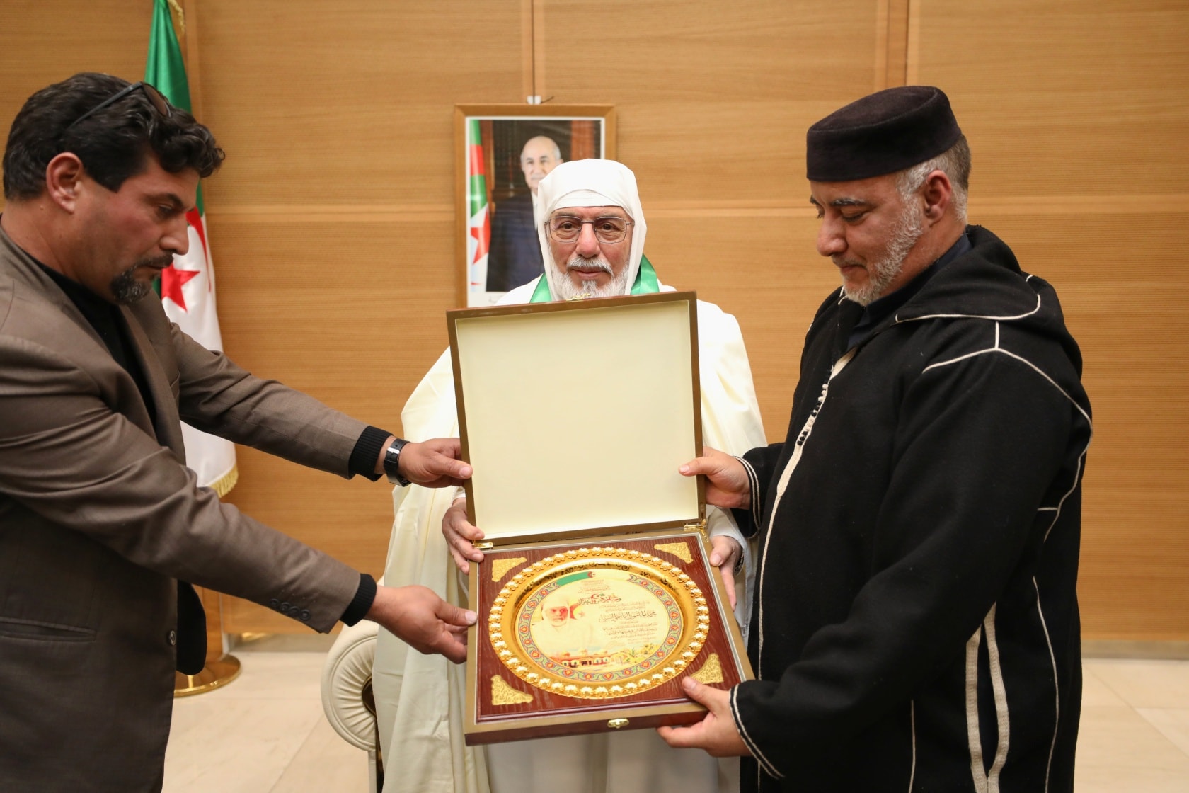 استقبل عميد جامع الجزائر، الشّيخ محمّد المأمون القاسميّ الحسنيّ، اليوم الاثنين 23 رجب 1447هـ، الموافق 12 جانفي 2026م، بالمركز الثّقافيّ للجامع، وفداً من مشايخ زاوية سيّدي الأحسن، بولاية برج بوعريريج.