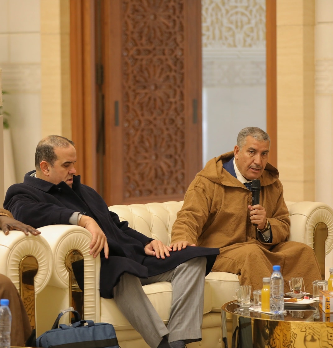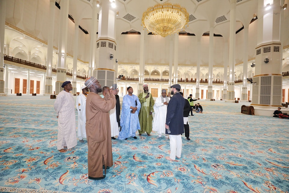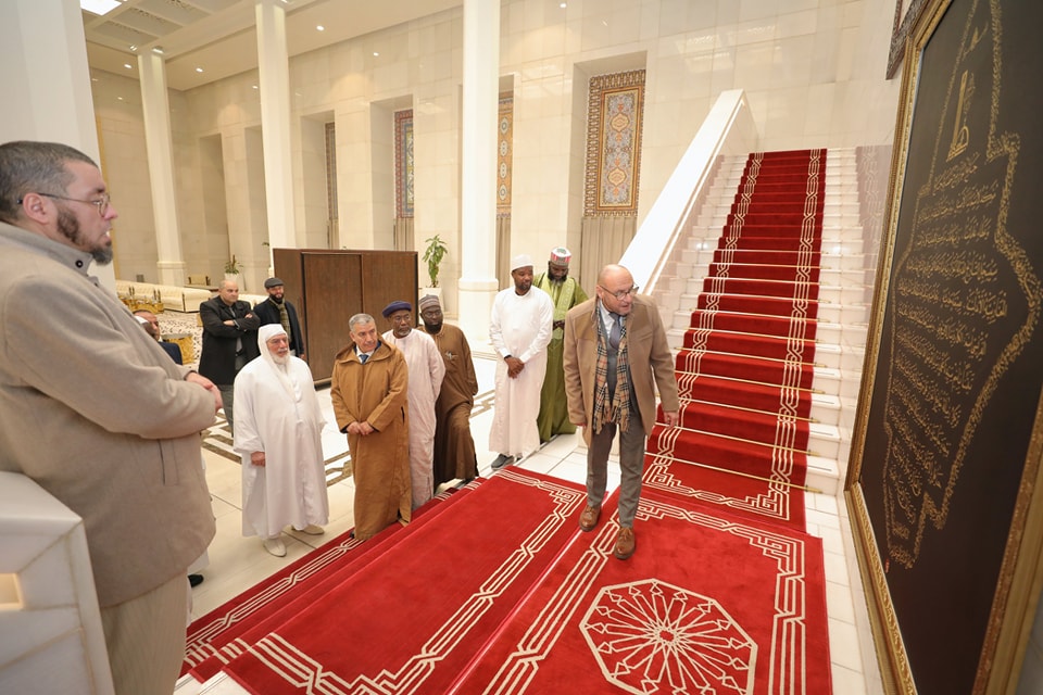 واغتنم السيّد العميد السّانحة، فقدّم للوفد الزائر لمحة شاملة عن المنظومة المؤسّساتيّة للجامع، مُبرزاً التّكامل الوظيفيّ بين هيئاته؛ بدءاً من الفضاء المسجديّ، بأقسامه الستة، مروراً بـالمنارة التي تحتضن مركز البحث في العلوم الدّينيّة وحوار الحضارات، ومتحف الحضارة الإسلاميّة في الجزائر؛ ثمّ المركز الثّقافيّ والمكتبة؛ وصولا إلى دار القرآن، المدرسة الدكتوراليه. وأكّد أنّ هذا التّنوّع الهيكليّ يجمع بين “جمال المعنى” الرّوحيّ والعلميّ، و”جمال المبنى” الهندسيّ المعماري.