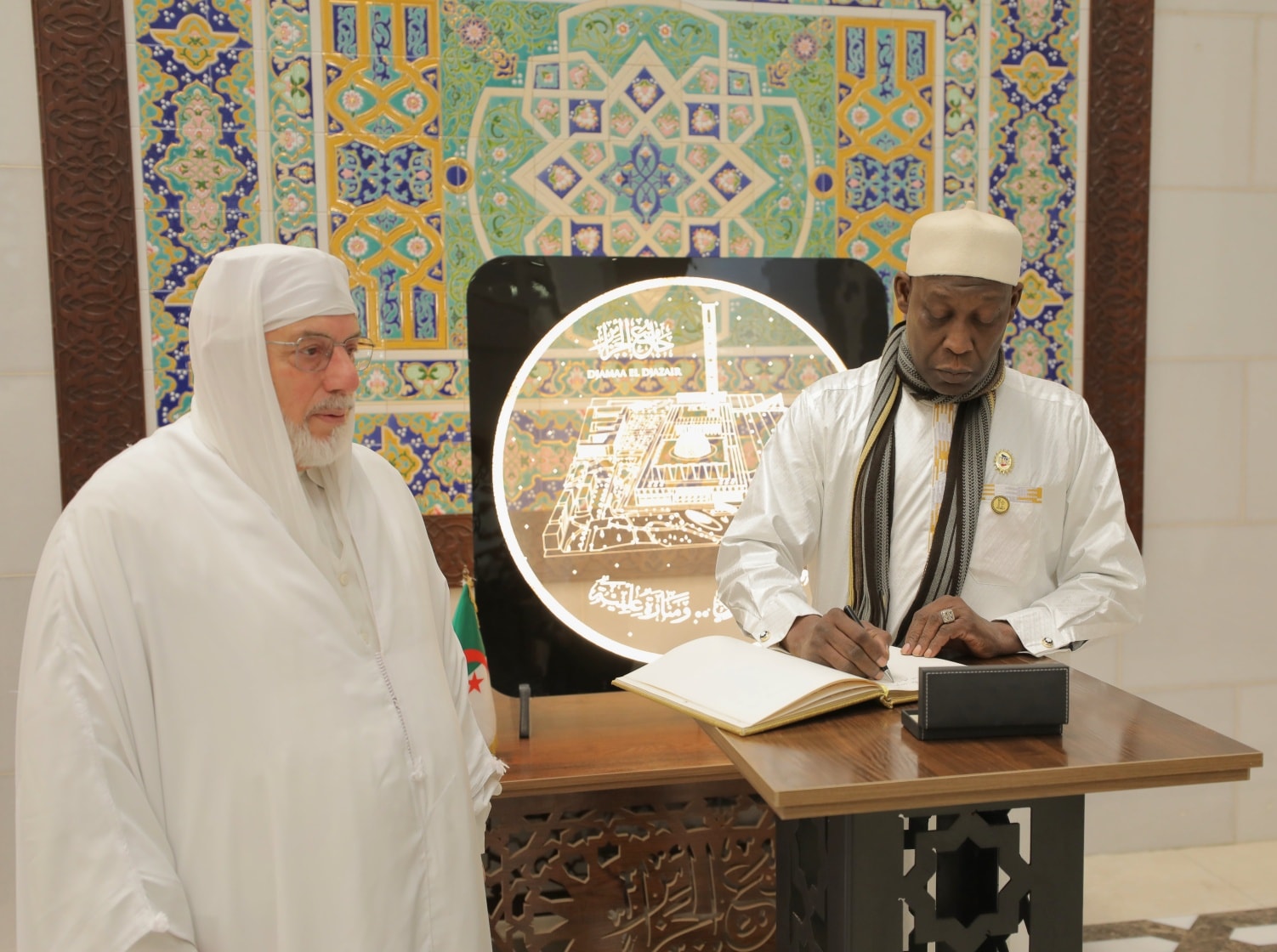 وفي مستهلّ اللّقاء، رحّب السّيّد العميد بضيوف الجزائر في رحاب الجامع، الصّرح الدّينيّ والحضاريّ الشّامخ، مؤكّداً أنّ هذه الزّيارة تأتي تعزيزاً للعلاقات المتينة العريقة التي تجمع بين البلدين الشّقيقين؛ وتميّزت عبر العصور بروح التّضامن والتّعاون المشترك في مختلف المجالات التي تحقّق المصالح المشتركة.