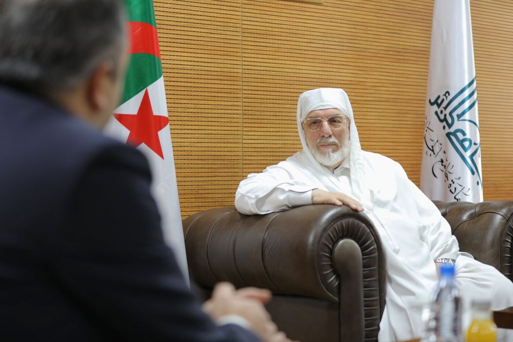 وخلال اللّقاء، استعرض السيّد العميد الرّسالة الحضاريّة لجامع الجزائر، مُبرزاً التّكامل بين هياكله العلميّة؛ لاسيّما المدرسة الوطنيّة العليا للعلوم الإسلاميّة #دار_القرآن، التي تضع ختم القرآن الكريم شرطاً أساسيّاً لطلبتها، تكريساً لنهج الجمع بين الرّسوخ المعرفيّ والتّزكية الرّوحيّة. كما نوّه بالدّور الحيويّ لـ #المركز_الثّقافيّ في تنشيط الفكر والحوار عبر ندواته التّخصّصيّة الكبرى.