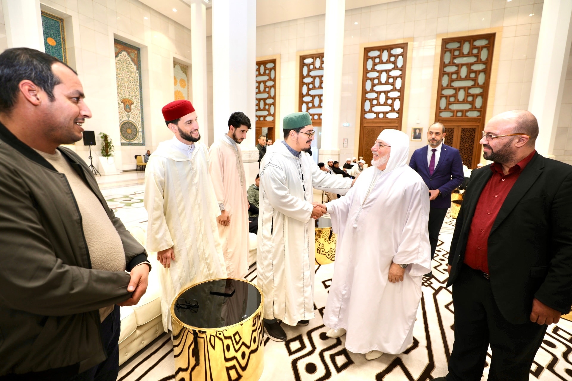 واستعرض الشّيخ القاسميّ أمام الضّيوف رسالة المدرسة الوطنيّة العليا للعلوم الإسلاميّة_”دار القُرآن”، مبرزاً خصائصها الأكاديميّة الفريدة؛ حيث يُعدُّ حفظ القُرآن الكريم شرطاً مُلزماً لطلبة الدُّكتوراه فيها، ممّا يجعلها نموذجاً للجامعة الإسلاميّة المعاصرة، التي تزاوج بين الدّقّة الأكاديميّة والعمق الرُّوحيّ.