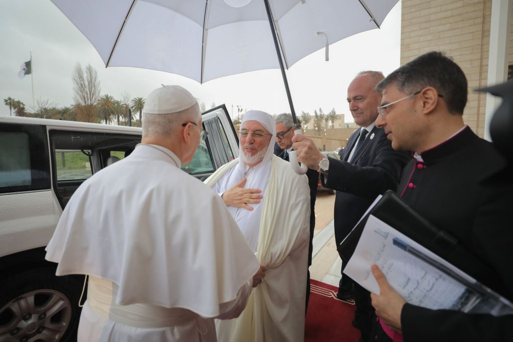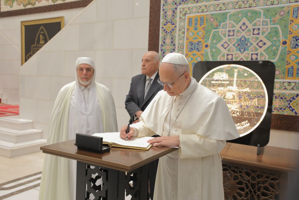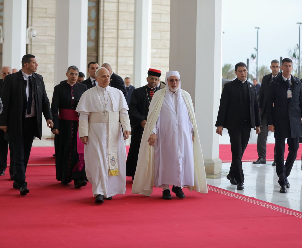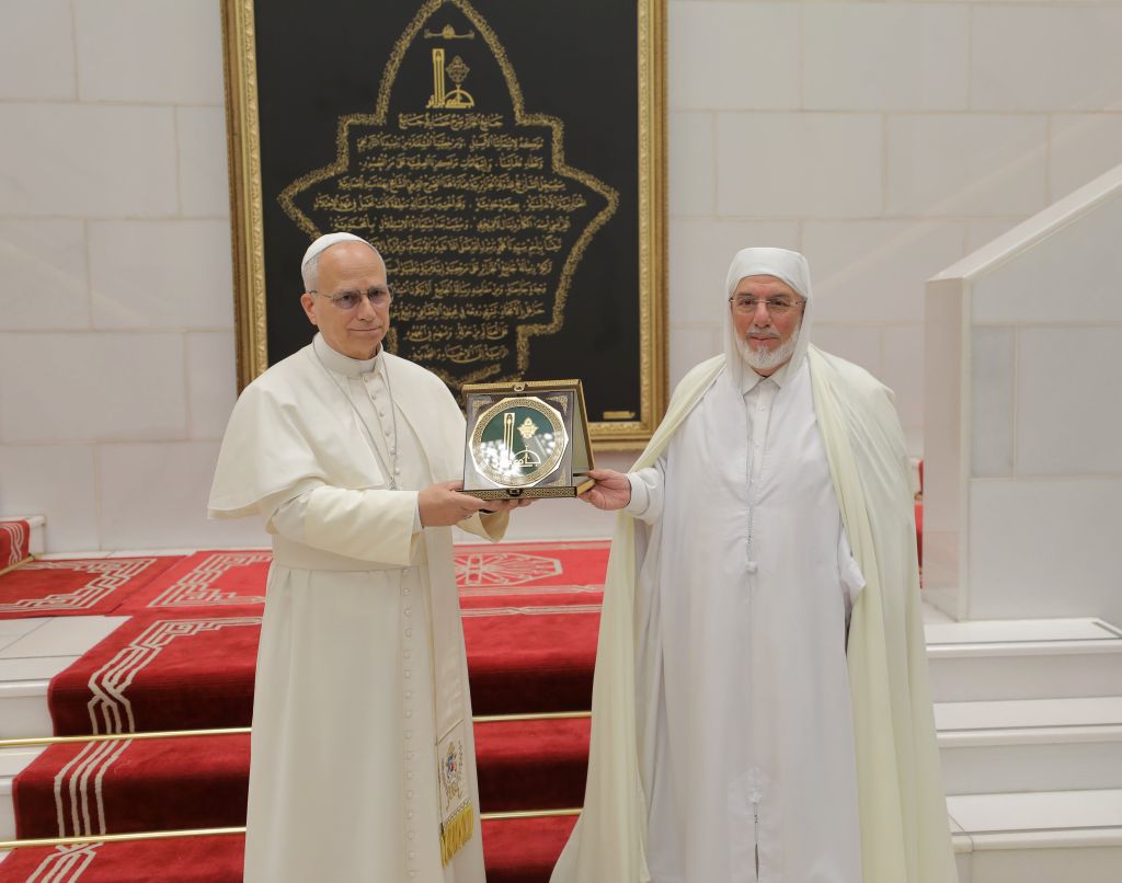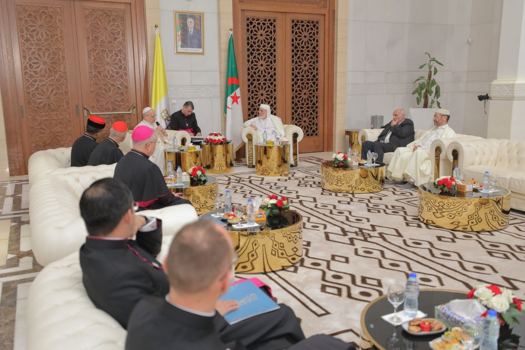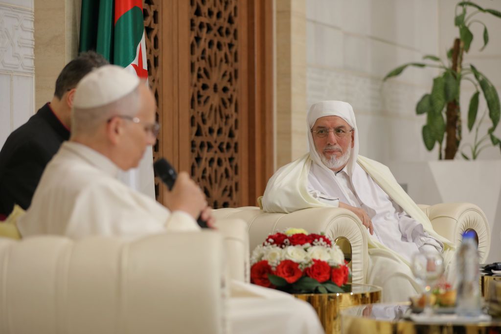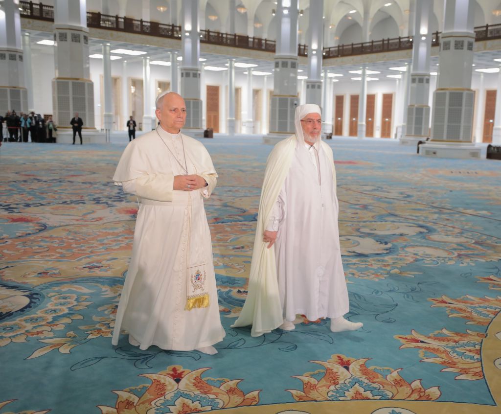 استقبل السّيد محمّد المأمون القاسميّ الحسنيّ، عميد جامع الجزائر، يوم الاثنين 25 شوّال 1447هـ، الموافق 13 أبريل 2026م، قداسة البابا ليون الرّابع عشر، والوفد المُرافق له؛ وذلك في إطار الزيارة التي يقوم بها إلى بلادنا، بدعوة من رئيس الجمهوريّة، السيّد عبد المجيد تبّون.