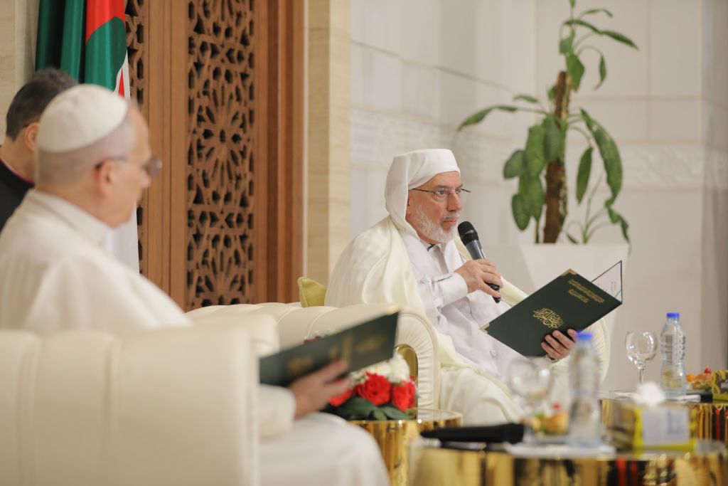 كما شدّد على أنّ الحوار بات ضرورة حضاريّة، وحاجة وجوديّة، لحماية الفطرة الإنسانيّة وقيم الأسرة والشّباب. وأوضح أنّ جامع الجزائر يطمح لأن يكون فضاءً للعلم والحوار وخدمة الإنسانيّة، مُستمدّاً ذلك من المرجعيّة الدّينيّة الوطنيّة للجزائر، القائمة على التّوازن والاعتدال والوسطيّة، التي تجعل من بلادنا فضاءً جامعاً لرسالة التّعايش.