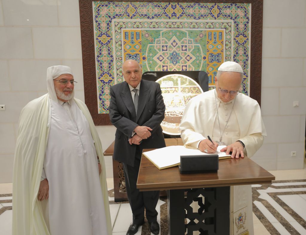 وعقب الاستقبال الرّسميّ، طاف قداسة البابا، بمعيّة عميد جامع الجزائر، في أرجاء قاعة الصلاة بالفضاء المسجديّ؛ حيث تلقّى شروحات وافية شملت الجوانب التّاريخيّة والفنّيّة لهذا الصّرح الشّامخ.