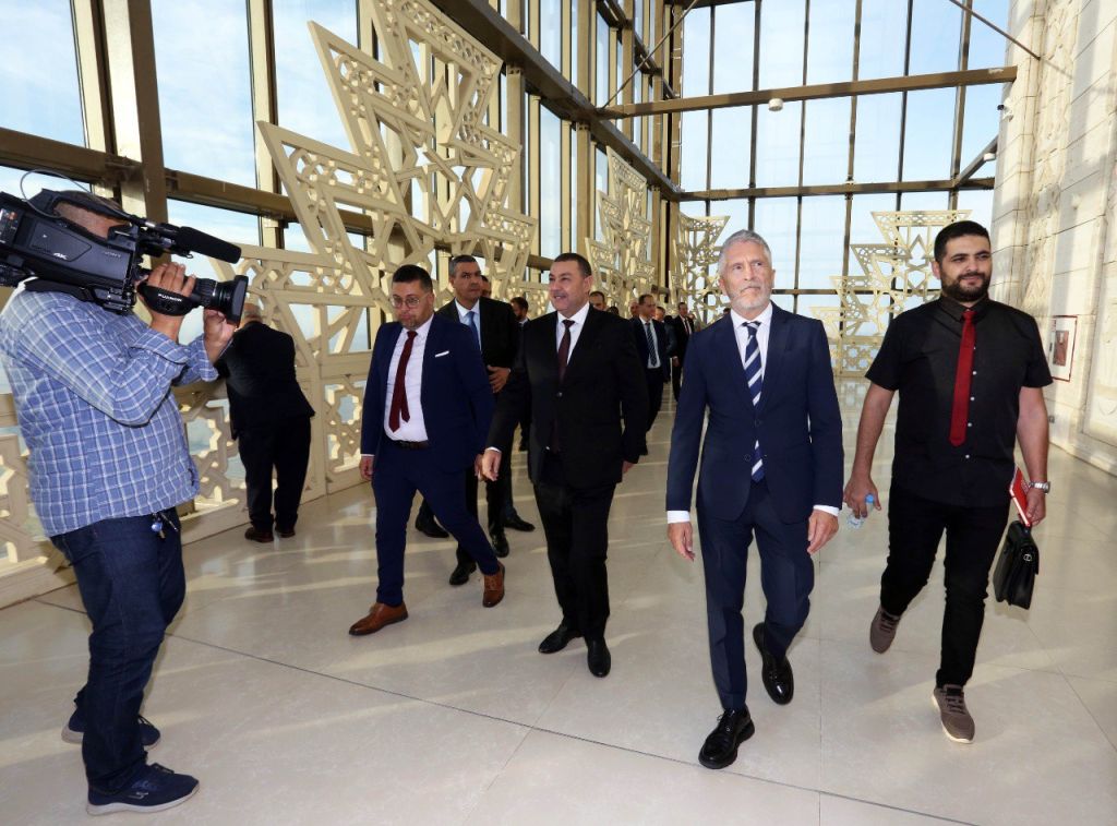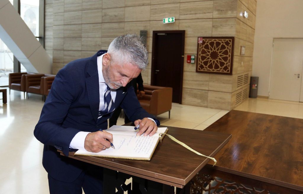 وأبدى الوزير الإسباني، من جهته، إعجابا بليغا بعمارة الجامع ورسالته الحضاريّة، حيث قال “إننا نرى في هذا المركز الحضاري والعلمي والروحي جسرًا للتعاون، لا يفرّق بيننا، بل يجمعنا”، مثل البحر المتوسّط الذي يجمع بيننا ولا يفرقنا، وأثنى على كلمة السّيّد العميد، موضّحا أنها تعكس الموقف النبيل للجزائر، شعبا وحكومة، وقال: “أشكركم على حفاوة الاستقبال، وعلى خطابكم الذي أثنيتم فيه على الموقف الإسباني الداعم للقضبة الفلسطينية”.