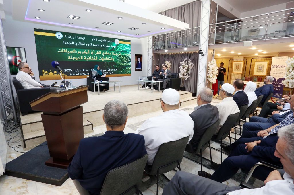 نوّه السيّد محمّد المأمون القاسميّ الحسنيّ، #عميد_جامع_الجزائر، بموضوع النّدوة الفكريّة، بعنوان: “ترجمة معاني القرآن الكريم والتفاعلات الثقافيّة الحديثة”، التي نظّمها #المجلس_الإسلاميّ_الأعلى، بالتعاون مع الإذاعة الجزائرية، يوم الثلاثاء 08 ربيع الآخر 1447هـ، الموافق 30 سبتمبر 2025م؛ بمناسبة إحياء اليوم العالميّ للترجمة.