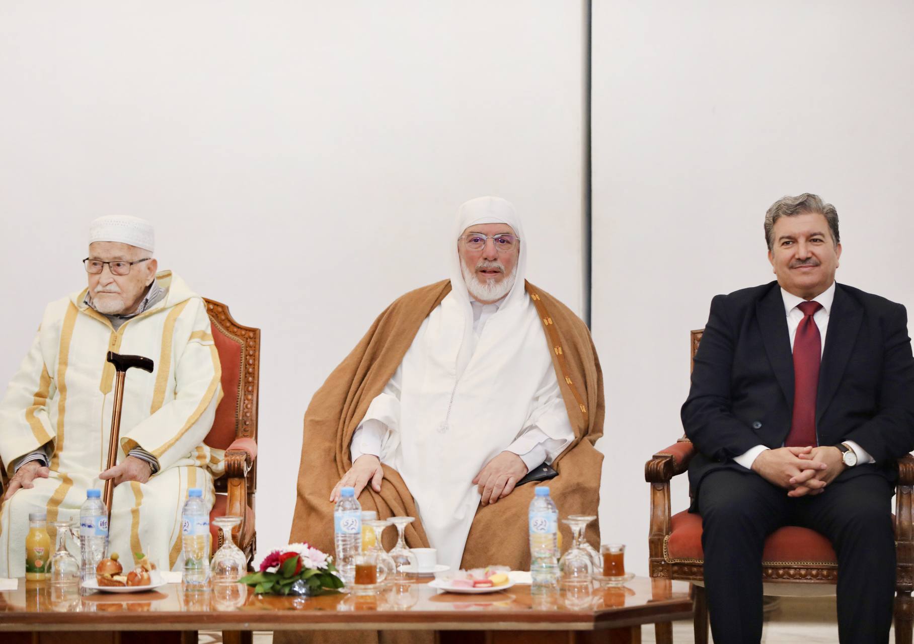 شارك عميد جامع الجزائر، الشّيخ محمّد المأمون القاسميّ الحسنيّ، يوم الخميس 05 رجب 1447هـ، الموافق 25 ديسمبر 2025م، في مراسم الاحتفاليّة التي أعلن خلالها إسداء رئيس الجمهوريّة، السيّد #عبد_المجيد_تبون، وسامًا من مصفّ الاستحقاق الوطنيّ بدرجة “عهيد” للمجاهد العلّامة، الشّيخ محمّد الصّالح الصّدّيق؛ تقديرًا لمسيرته العلميّة والدّعويّة، وتكريمًا لإسهاماته الجليلة في نشر قيم الاعتدال والوسطيّة والتّسامح.