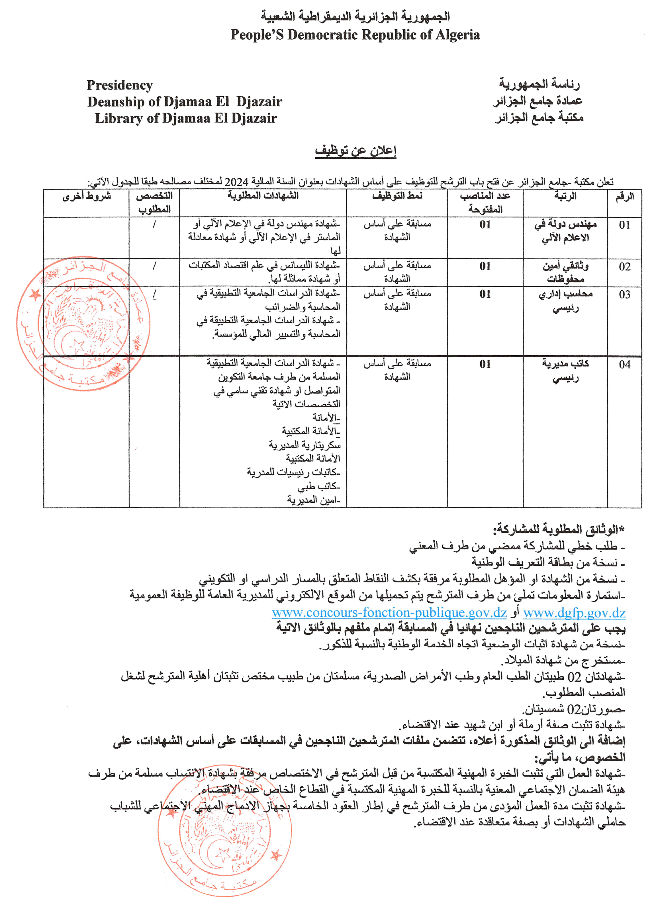 أخبار جامع الجزائر إعلانات واستشارات مكتبة جامع الجزائر